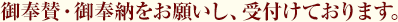 五十年百年に亘り、後世に残るものでありますので、氷川様への崇敬のお気持ちのある方々の御奉賛をお願い申し上げます。
